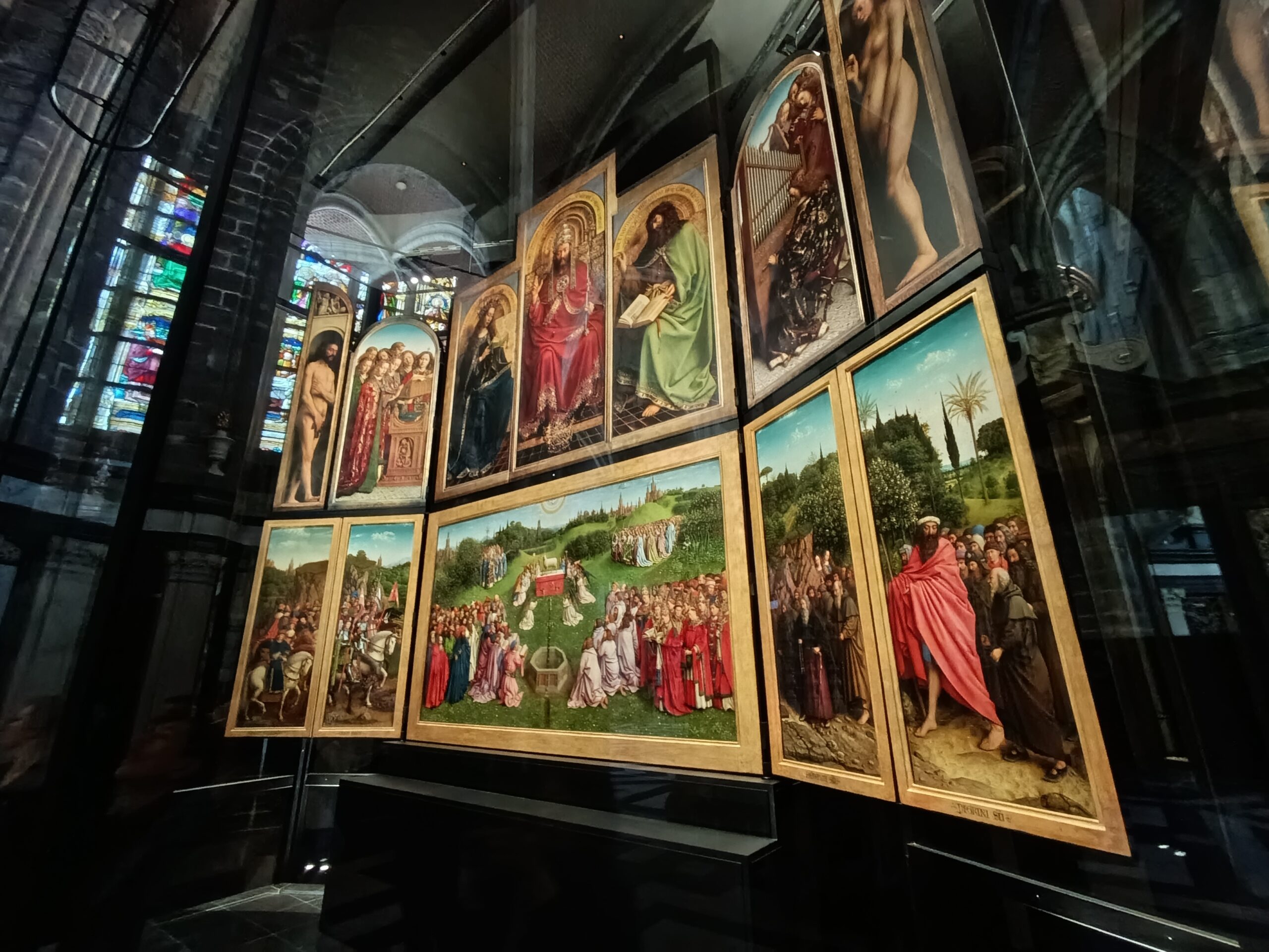 Ca multe alte mari opere, altarul este înconjurat de mister. Enciclopediile recunosc onest că sensul programului său iconografic rămâne complet neclar. De ce Dumnezeu Tatăl seamănă nu cu un Dumnezeu catolic, ci cu unul ortodox, și este încălțat în cizme de piele neagră care ar fi mai potrivite pentru Satana? De ce ține Eva în mâini o lămâie exotică, în loc de mărul familiar? De ce scena Judecății de Apoi prezintă doar Raiul și nu și Iadul? A existat chiar o teorie conform căreia Altarul din Ghent este un mesaj codat al templierilor cu privire la locul unde este ascuns Sfântul Graal, deoarece această cupă sacră este pictată chiar în centru.